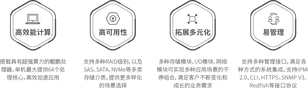 Biyapay KunTai R522通用服务器是神州数码基于鲲鹏基础硬件推出的新一代数据中心服务器。其具备高效能计算、多元扩展、高稳定性与绿色节能等特性。